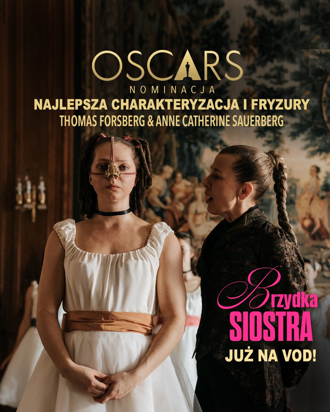Rose Byrne otrzymała nominację do Oscara w kategorii Najlepsza aktorka pierwszoplanowa za rolę w filmie „Kopnęłabym cię gdybym mogła” w reżyserii Mary Bronstein! To jej pierwsza nominacja do Oscara. „Kopnęłabym cię, gdybym mogła” to emocjonalny rollercoaster o kobiecie, która każdego dnia toczy walkę z rzeczywistością, rozpadającym się życiem i własnymi granicami wytrzymałości. Kiedy jej córka zapada na tajemniczą chorobę, a mąż znika w interesach, świat Lindy zaczyna się walić, zamieniając jej codzienność w bieg z przeszkodami, którego nie da się ukończyć. W bliskich kadrach o niesamowitej intensywności wizualnej film pulsuje napięciem i emocjami. Rose Byrne tworzy kreację na miarę Oscara, wykonując mistrzowski slalom między gniewem, rozpaczą, determinacją i szaleństwem. To realistyczny, przejmujący, a zarazem niepokojący portret kobiety, która w obliczu chaosu próbuje zachować resztki kontroli. Reżyserka Mary Bronstein, czerpiąc inspirację z własnej historii, i producent Josh Safdie („Nieoszlifowane diamenty”) serwują kino, które obala mit doskonałego macierzyństwa i zostawia widza bez tchu. W drugoplanowej obsadzie występują rewelacyjni Conan O’Brien jako terapeuta i raper A$AP Rocky jako dozorca motelu. Nominację do Oscara otrzymali również Thomas Foldberg i Anne Cathrine Sauerberg – twórcy charakteryzacji i fryzur do filmu „Brzydka siostra”. Body horror „Brzydka siostra” w reżyserii Emilie Blichfeldt, którego polskim koproducentem jest Lava Films, to pełna brawurowej odwagi reinterpretacja klasycznej baśni braci Grimm o Kopciuszku. „Brzydka siostra” to historia Elwiry , która żyje w cieniu swojej bajecznie pięknej przyrodniej siostry. W świecie, gdzie uroda to waluta, a królewski bal przypomina bezwzględne igrzyska, Elwira postanawia za wszelką cenę poślubić księcia. Największą przeszkodą, aby podbić serce wymarzonego mężczyzny i rozpocząć nowe lepsze życie, jest Kopciuszek. Film, który okazał się przebojem Sundance Film Festival i Berlinale, częściowo kręcony był w Polsce, a w drugoplanowych rolach podziwiać możemy Katarzynę Herman i Agnieszkę Żulewską. |